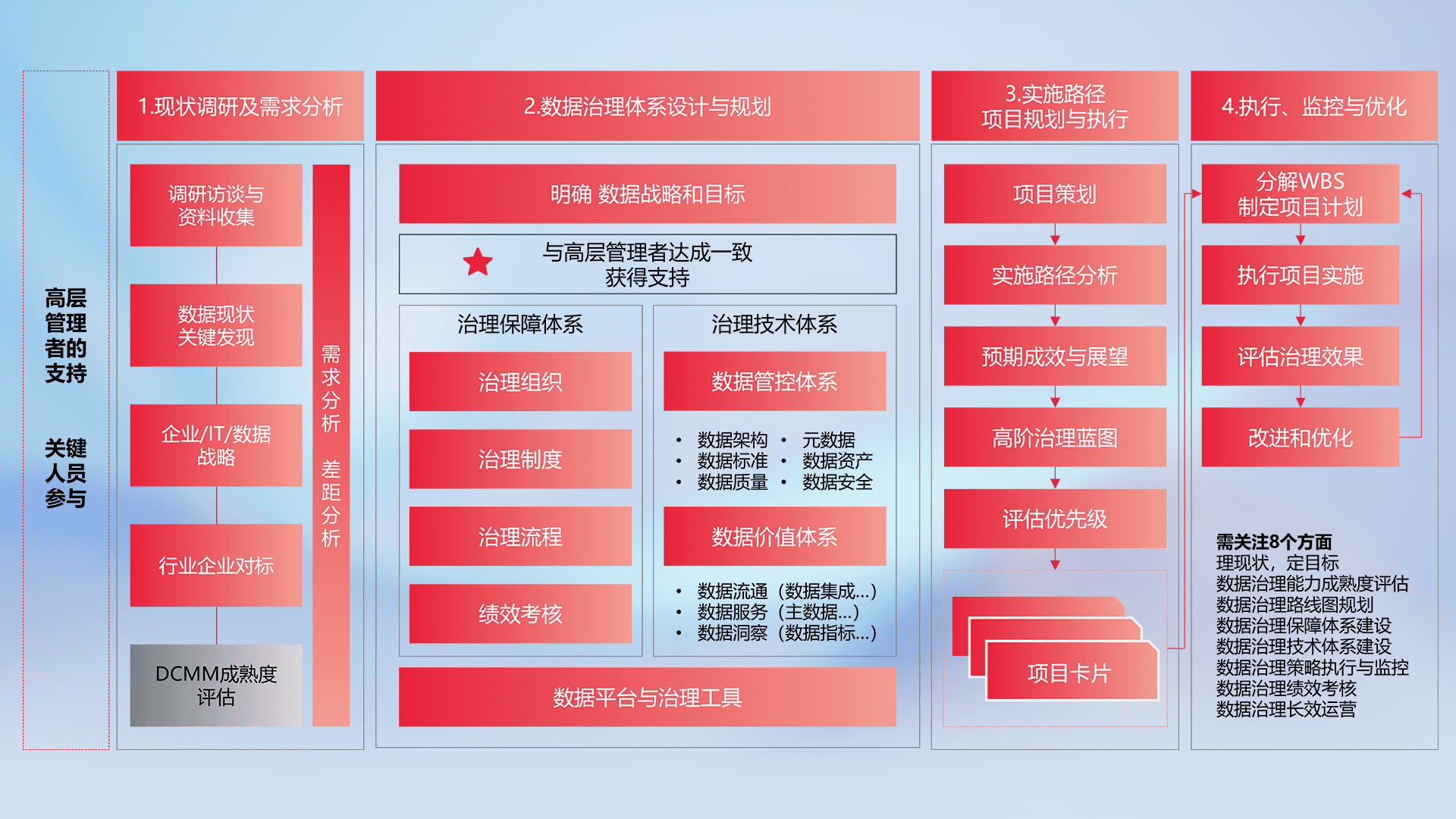 制定并执行统一的数据标准,,,规范数据定义和格式,,消除冗余和不一致性,,,,实现跨部门和跨系统的数据一致性,,,为企业提供标准化的数据基础。。。。
